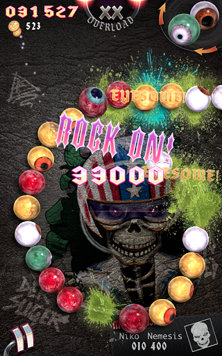 Eyelord "is a gorgeous flavors Zuma game, the game remains the older generation Zuma rule of the game, but its style was the opposite, very decadent. For performance in the picture quite heavy taste, former players launch Sarah replaced by a one and a bloody eyes, the sound of the game is also very realistic, eyes burst into a "puff puff Zi Zi" sound very nausea, terror can.